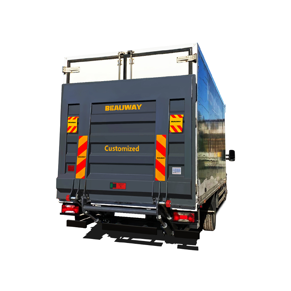 The Beauway three section bumper hydraulic tail lift with a steel plate deck is designed for compact installation and flexible cargo loading operations. Its multi-section folding structure enables efficient deployment and storage, making it suitable for three section tail lift platform, bumper mounted hydraulic lift system, and steel plate folding cargo lift applications in urban transport and delivery services.